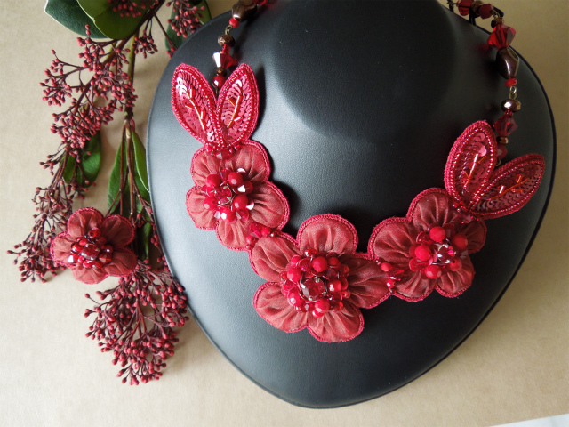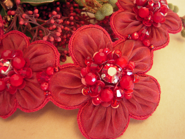 生地:ポリエステル、 シルクオーガンジー、スワロフスキー、チェコ、スパンコール、その他