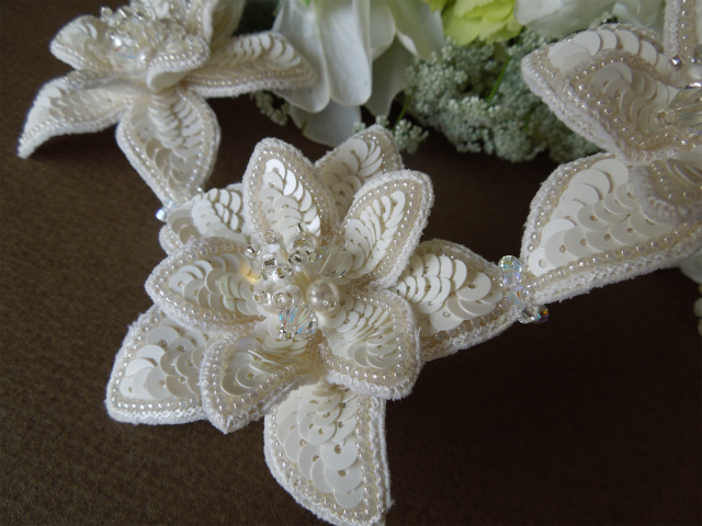生地:ポリエステル、スワロフスキー、チェコ、スパンコール、その他