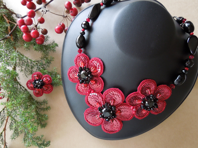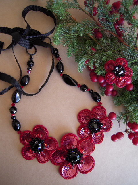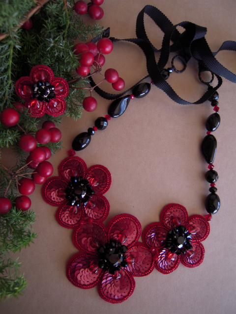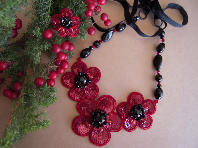 生地:ポリエステル、スワロフスキー、チェコ、オニキス、アクリル、スパンコール、その他